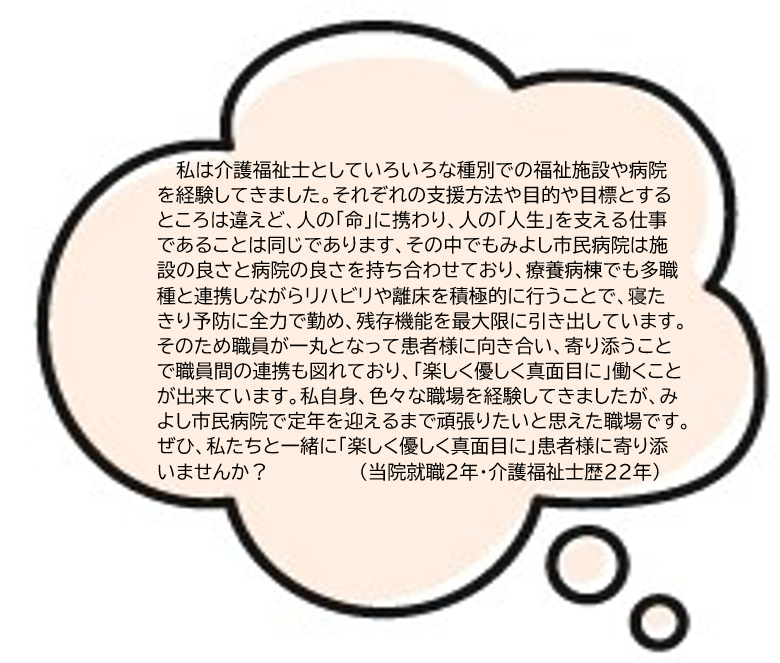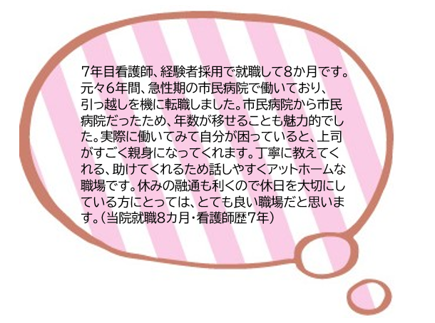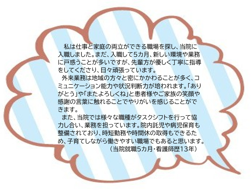 現場で働くスタッフたちの声をご紹介します。職場環境や、仕事のやりがい、想いをご覧いただけます。