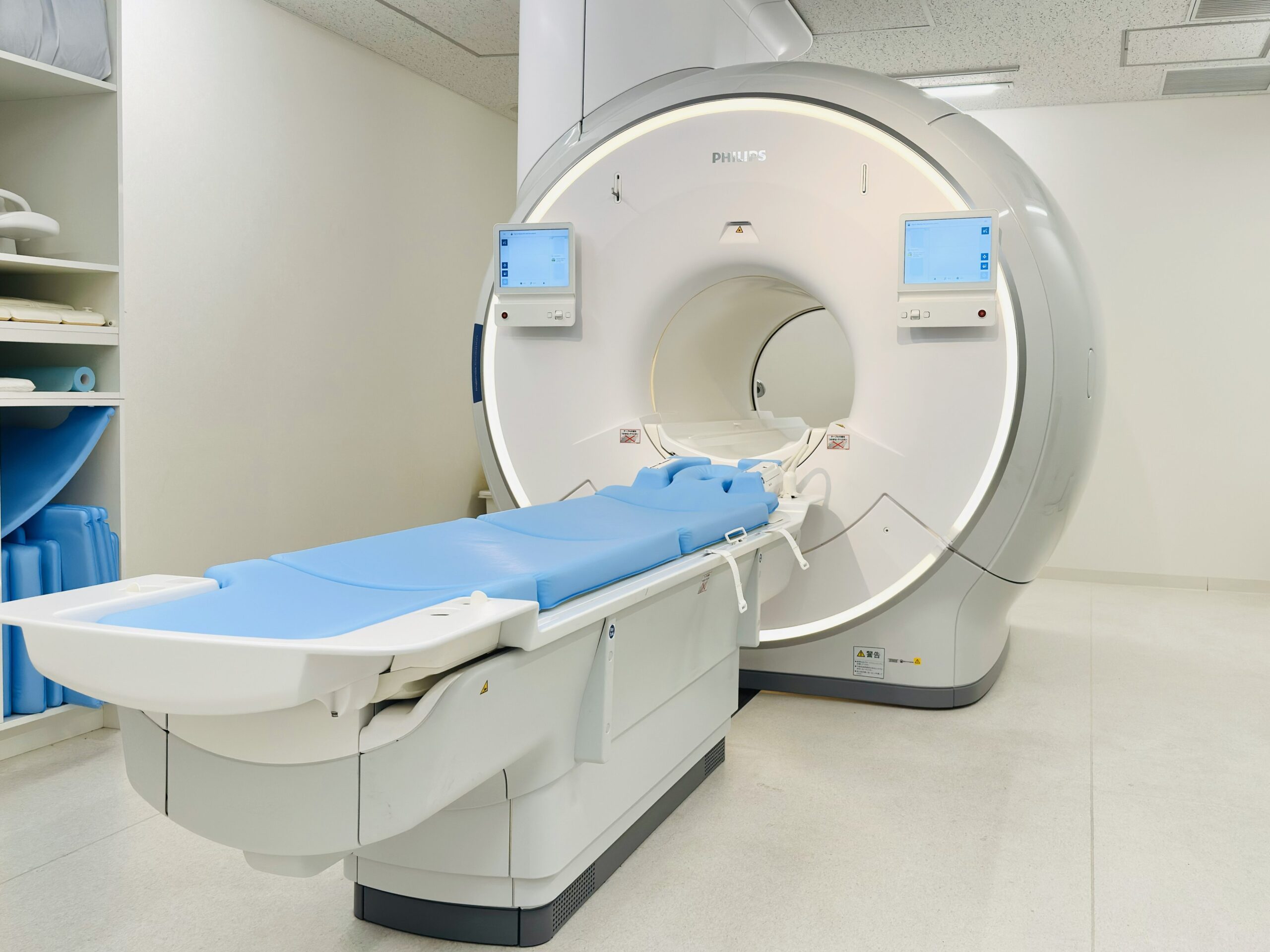 強い磁気と電波を使い、体のあらゆる方向の断層像を撮影します。